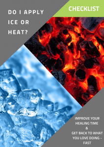 I've completed a great decision making tool to help you out in what to apply and when. It's a downloadable PDF checklist called "Do I apply ice or heat? Improve your healing time and get back to what you love doing fast!"